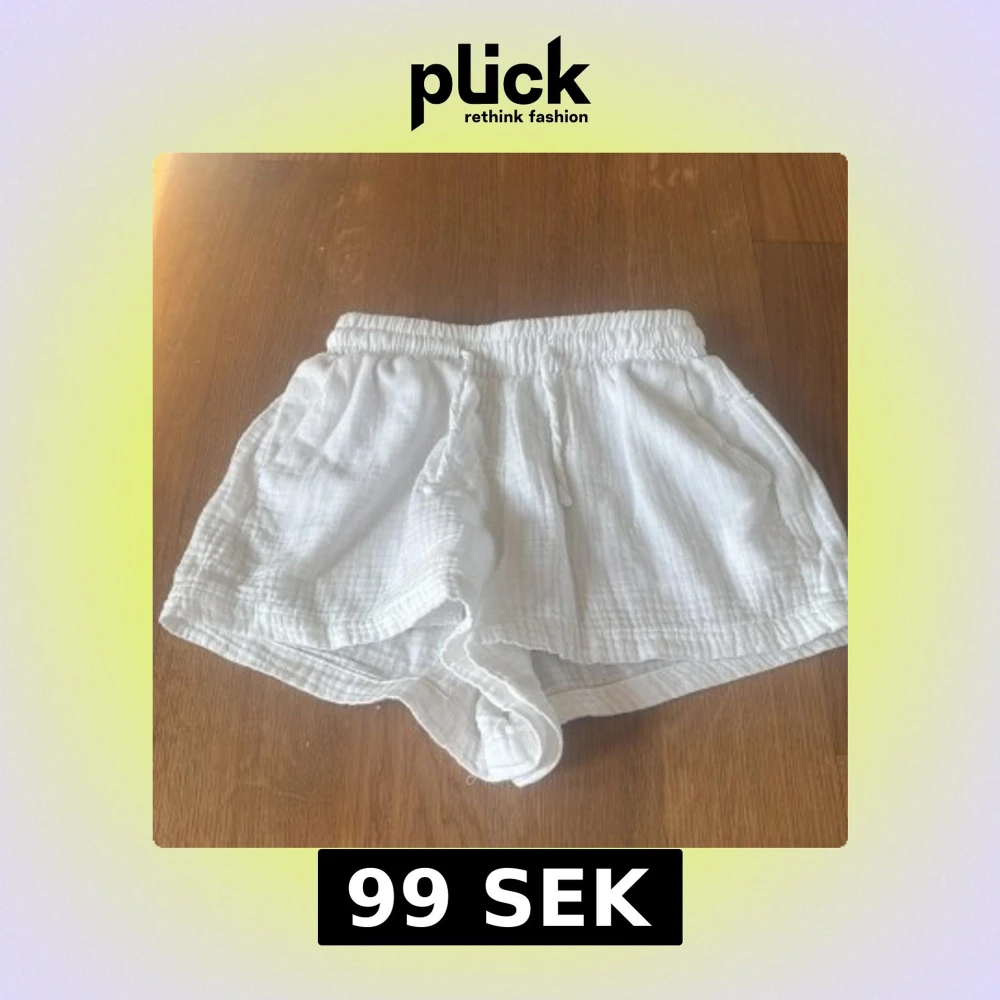 Säljer ett par vita shorts i mjukt bomullsmaterial. De har en elastisk midja med snörning för justerbar passform. Perfekta för varma sommardagar!