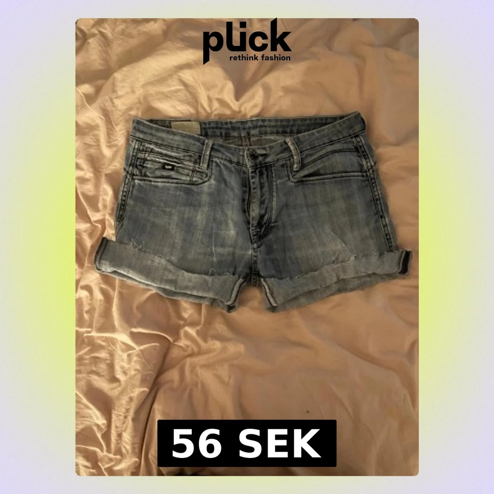 Säljer ett par ljusblå jeansshorts från GAS med klassisk femficksdesign och uppvikta benslut. Shortsen har en avslappnad passform och är tillverkade i bomull. Perfekta för varma dagar och enkel att matcha med allt.