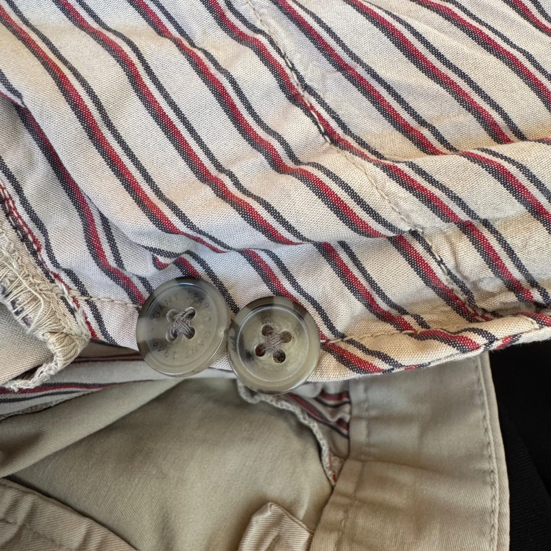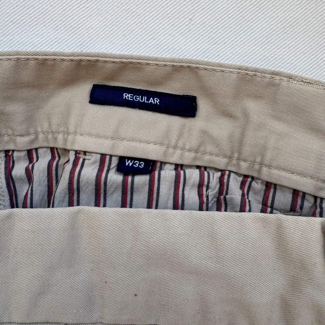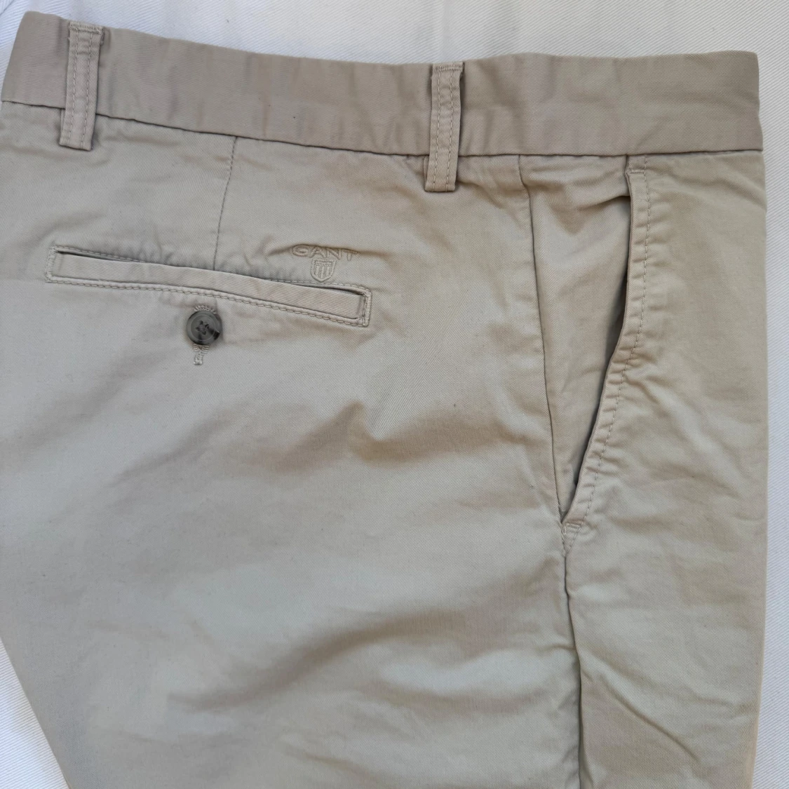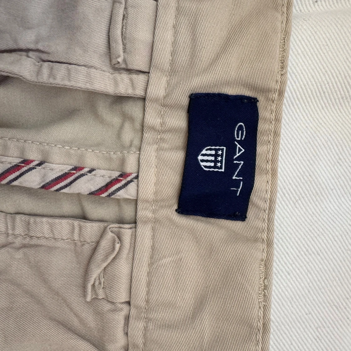 Snygga beige shorts från GANT i klassisk chino-stil samt i regular fit. De har bälteshällor, fickor fram och bak, samt en diskret broderad Gant-logga ovanför bakfickan. Stilrena och lätta att matcha med det mesta. Shortsen är i bra skick och har även kvar sina extra knappar (se sista bilden).