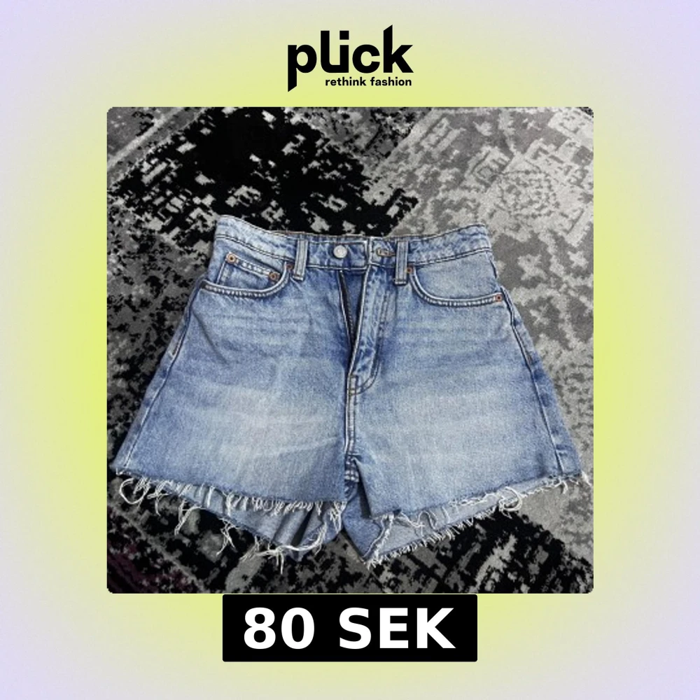 Snygga blå jeansshorts från Weekday med fransiga kanter och klassisk femficksdesign. Perfekta för en avslappnad stil. De har en knappgylf och är tillverkade i ett slitstarkt denimtyg.