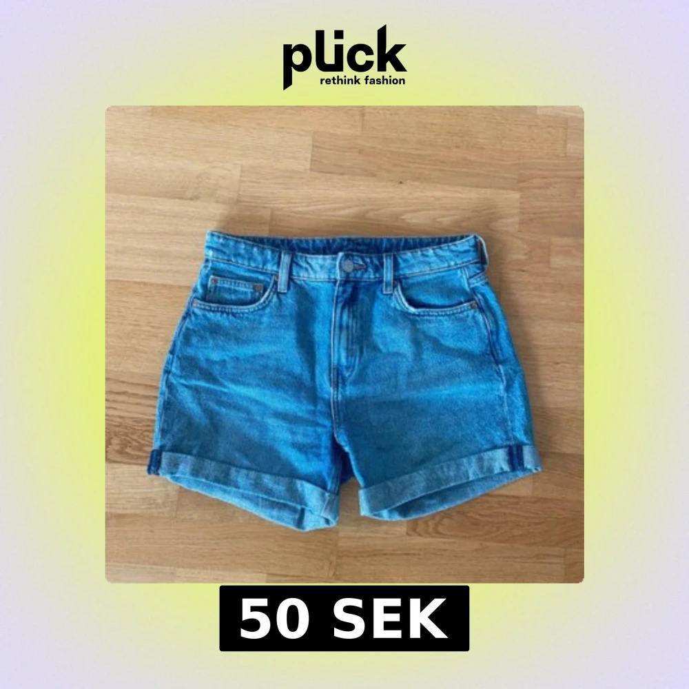 Klassiska blå denimshorts med hög midja från Weekday i modell Lo strl 36🌸