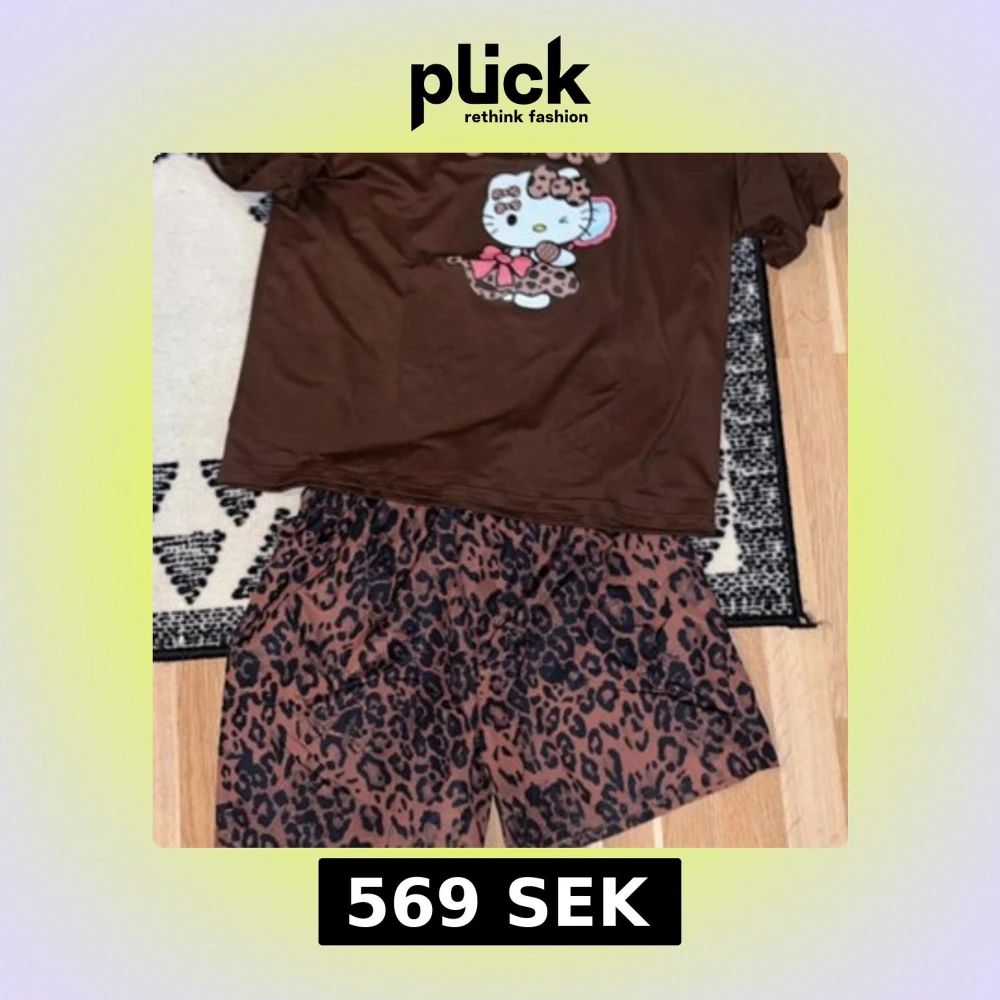 Säljer ett par bruna shorts med svart leopardmönster. De har en loose passform och resår i midjan för extra komfort. Perfekta för dig som vill sticka ut med ett djurmönster i sommar. ( liten i stolek !!!!!!)