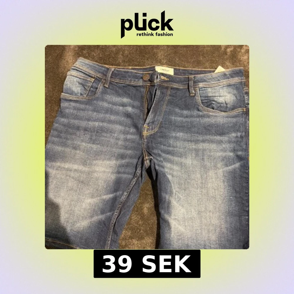 Snygga blå jeansshorts från Produkt i storlek XL. Klassisk femficksmodell med gul kontrastsöm och knappstängning fram. Shortsens tvättade denim ger en cool och avslappnad vibe, perfekt för varma dagar. Märkespatch baktill och slitningar för extra stilpoäng.