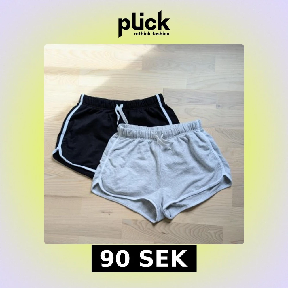 Två par mjukis shorts, ett par svarta med vita detaljer och ett par ljusgrå. Båda har elastisk midja och snörning framtill. Perfekta för träning eller chill dagar. Köp en för 50 kr. Använd en gång var nästintill nytt skick. Se andra bild för att se hur den ser ut på notera att den är alldeles för liten.