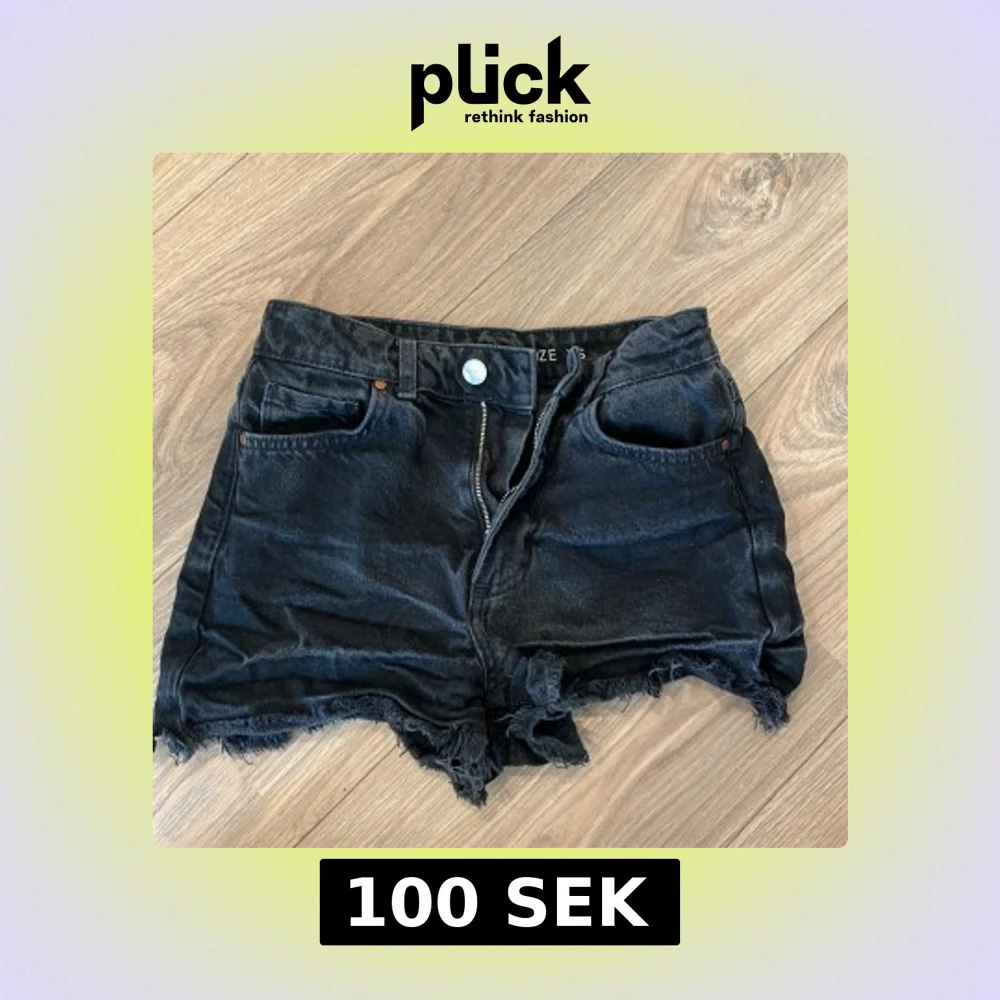 Svarta midwaist jeansshorts från Denim Izabel i storlek XS. Modellen har klassiska fem fickor, dragkedja och knapp framtill samt fransad och rå kant nedtill för en edgy vibe. Perfekta för sommaren och passar till sneakers eller boots.