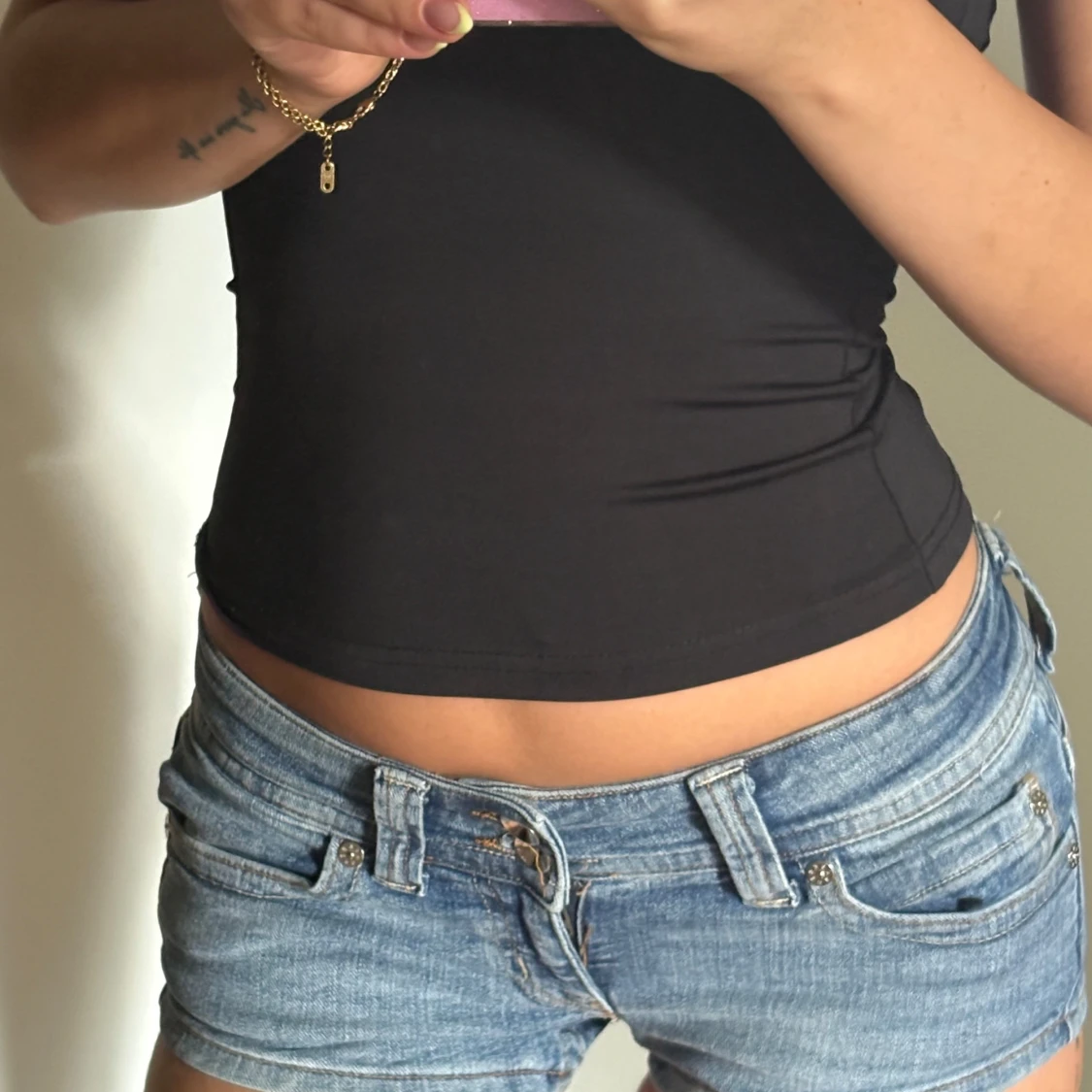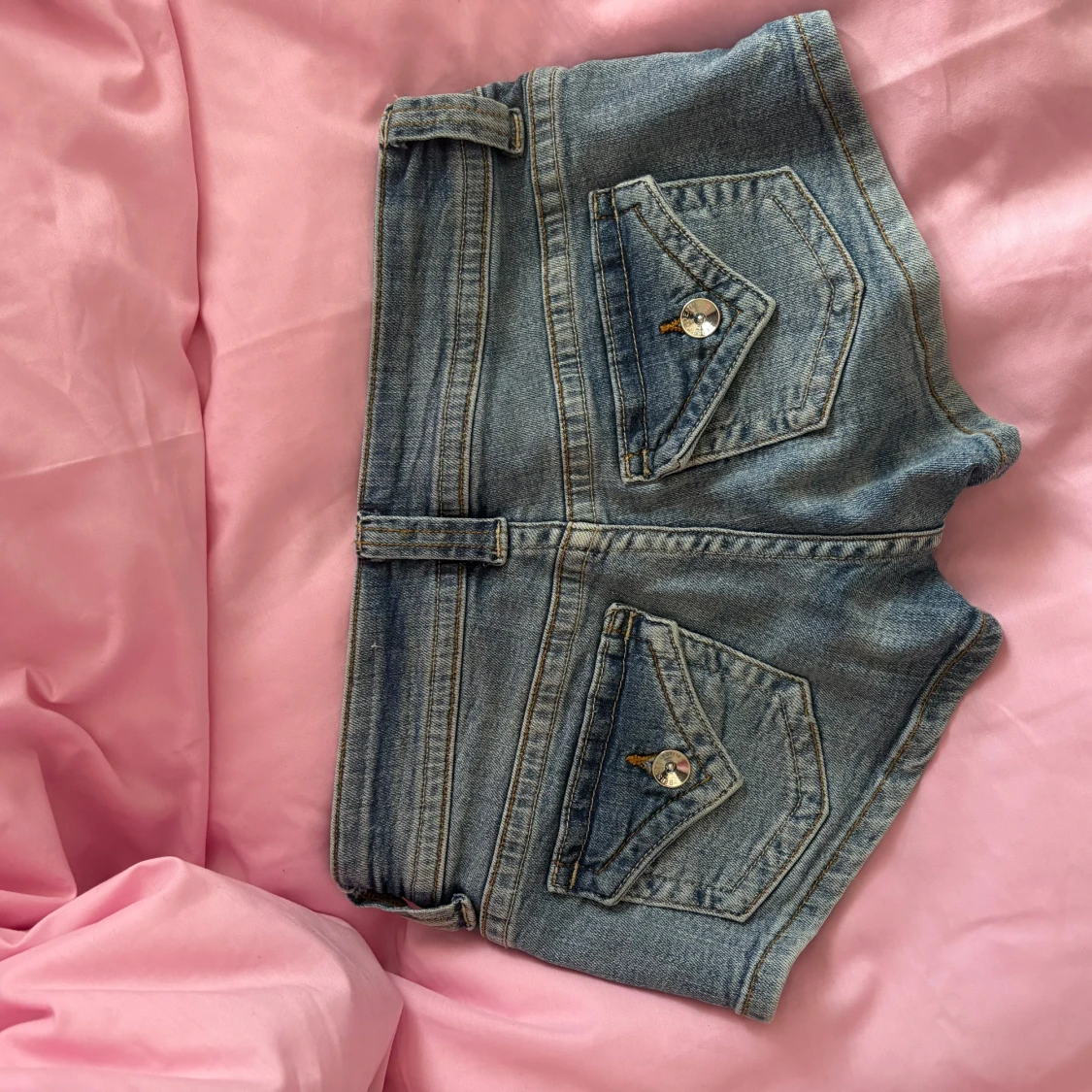 Säljer ett par blå lågmidjade jeansshorts med snygga detaljer som dubbla framfickor och dekorativa knappar. Storlek 34/XS dom har aldrig använts då jag har för många tyvärr💛