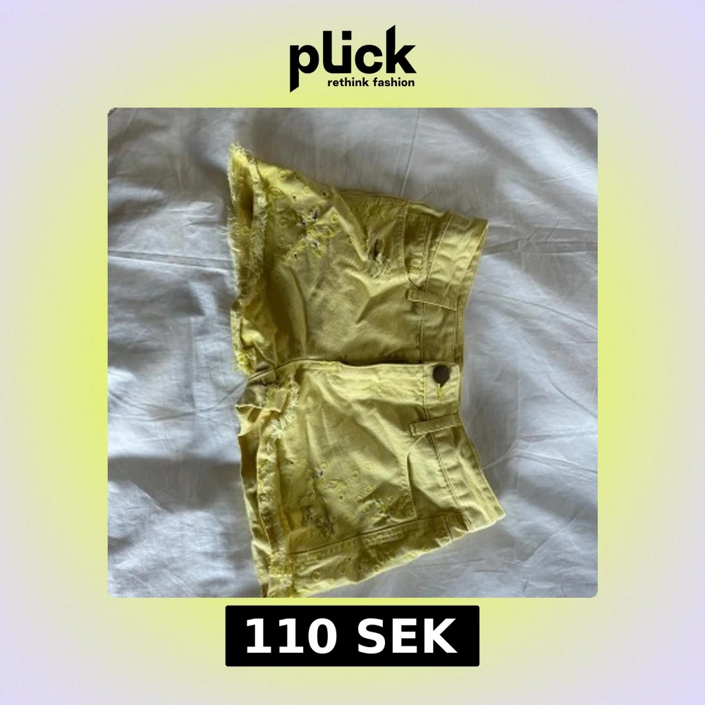 Snygga gula jeansshorts som är coola nu till sommaren tyvärr är de försmå för mig, dom är i storlek 34 och köpta secondhand så vet ej märke !