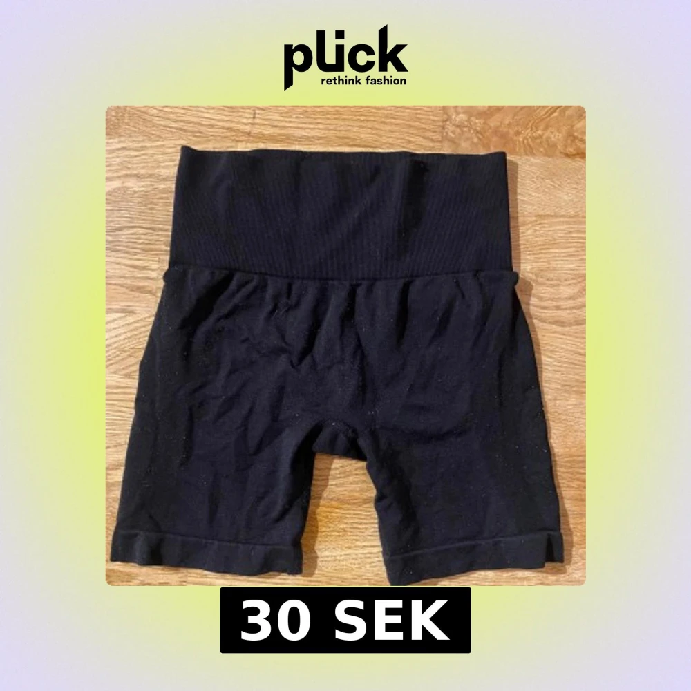 Svarta cykelshorts med bred, ribbad hög midja. Tight passform och stretchigt material i polyamid och elastan. Har två vita fläckar på baksidan men benen krullas alltid upp när man har på sig dom så den på ena benet syns aldrig
