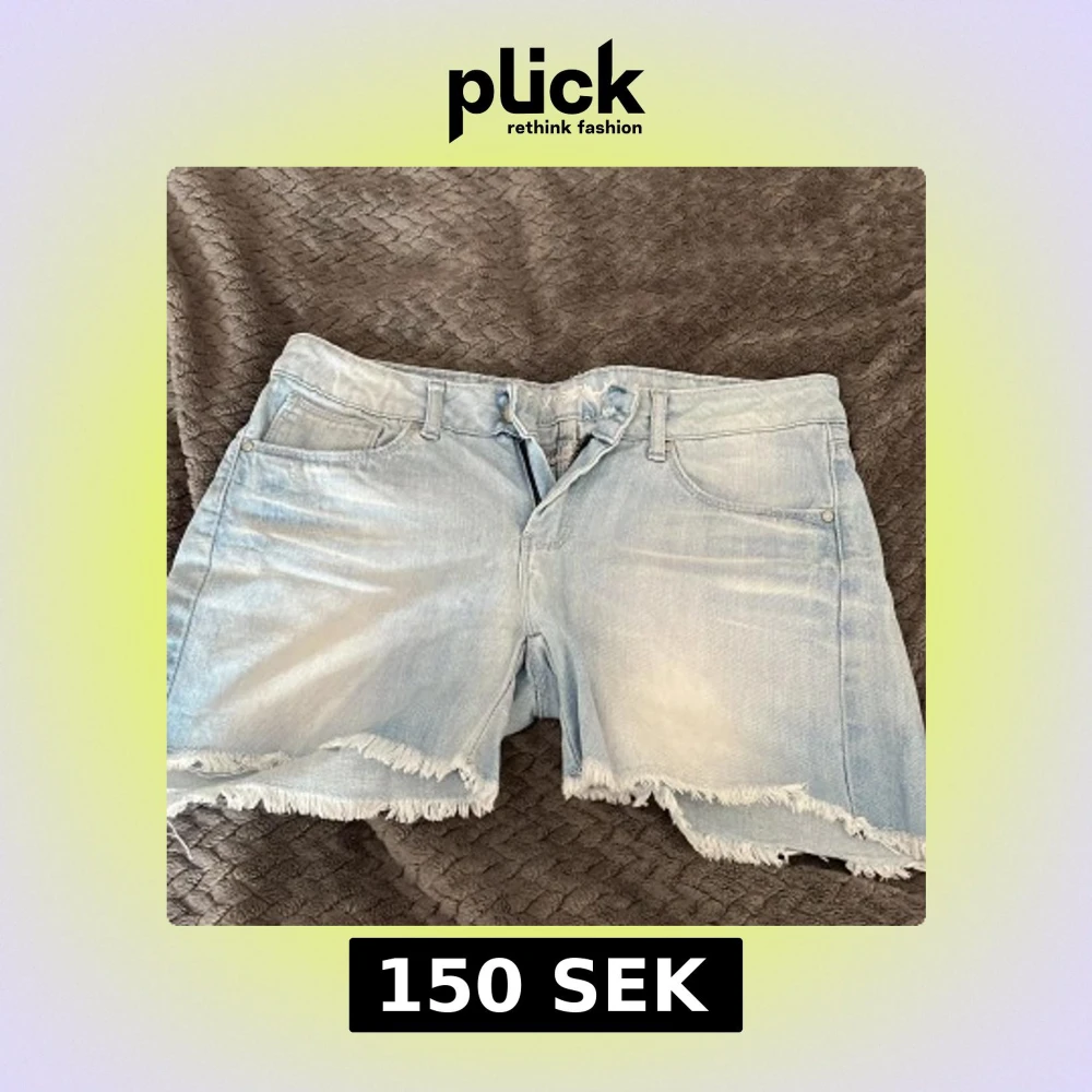 Snygga ljusblå jeansshorts med fransig rå kant och klassisk femficksdesign. Shortsen har bälteshällor och dragkedja framtill. Perfekta för varma dagar när du vill ha en avslappnad och trendig look. Storlek XS❤️