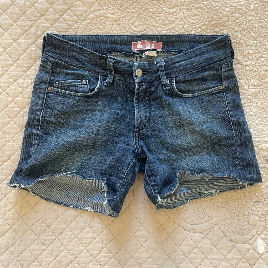 Snygga blå jeansshorts från SOIN med råa, fransiga benslut och klassisk femficksdesign. Shortsen har låg midja och en avslappnad passform, perfekta för varma dagar. Tidlös denimlook som funkar till allt och ger en cool vibe.