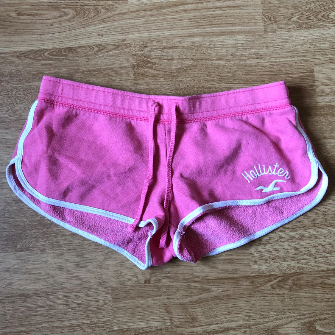 Jättesnygga lågmidjade rosa mjukisshorts från hollister, känns väldigt 2000-tal!💗Sista bilden är tagen vid fönstret för att försöka visa färgen bättre! Storlek medium men passar mindre storlekar också beroende på hur man vill att de ska sitta!! Skriv om du har frågor :)