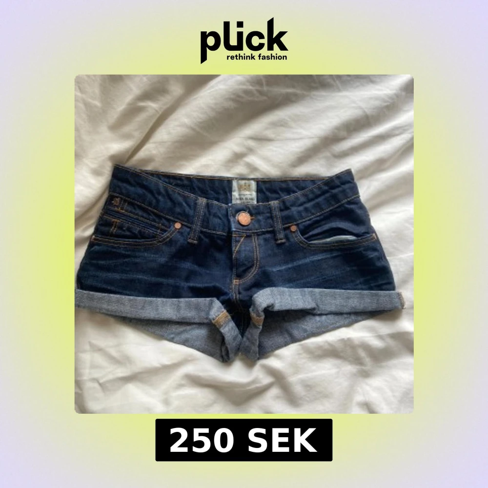 Snygga mörkblå jeansshorts från River Island Shortsen har kopparfärgade nitar och knapp, samt kontrastsömmar. Perfekta för sommaren och har låg midja. Storlek 6 motsvarar xs