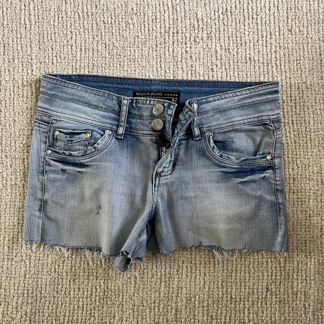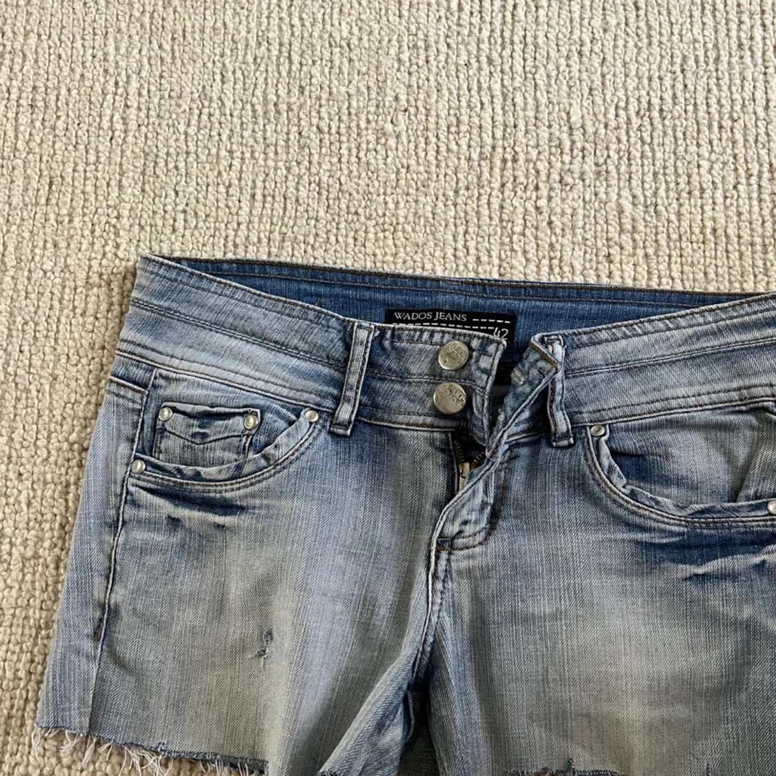 Säljer dessa ljusblå avklippta shorts, använt få gånger💞💞storlek 42 men skulle säga att de är typ s/m