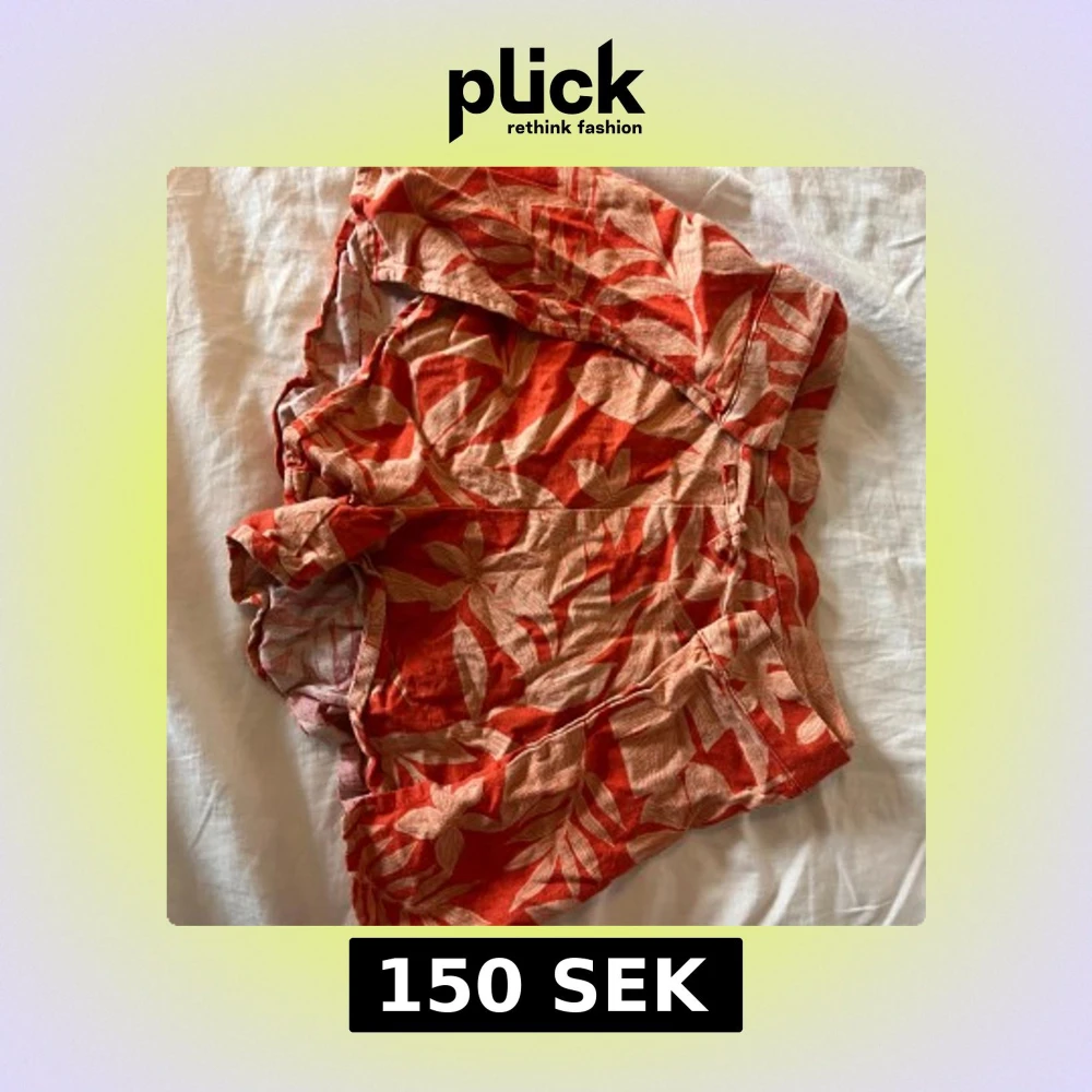 Snygga röda shorts från Zara med beige blommigt mönster. De har en loose passform och elastisk midja för extra komfort. Perfekta för varma sommardagar och har en riktigt chill vibe. Materialet är mjukt och luftigt, troligen bomull eller linne.