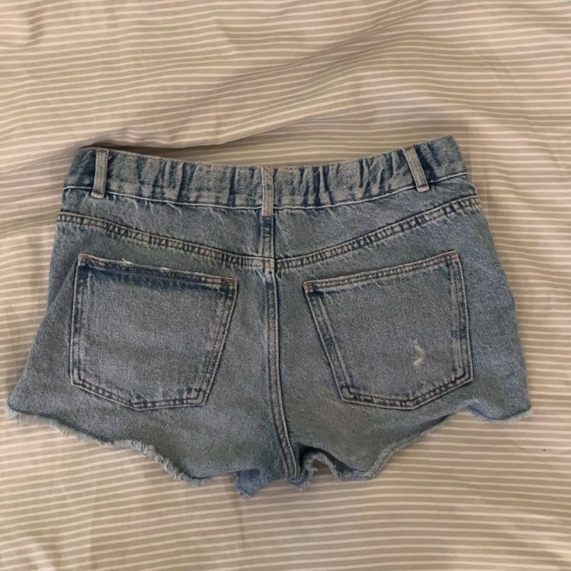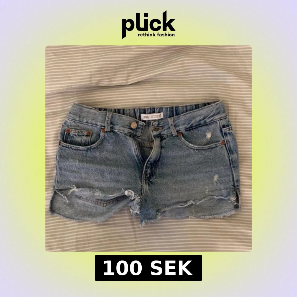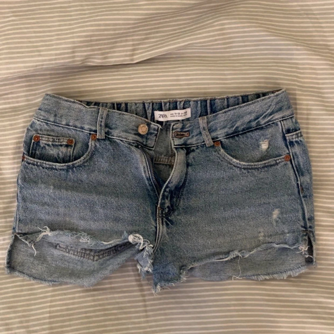 Snygga jeanshorts från Zara med slitningar står dem är i stolek 152, men dem passar mig bra och jag har 36/38 vanliga fall!