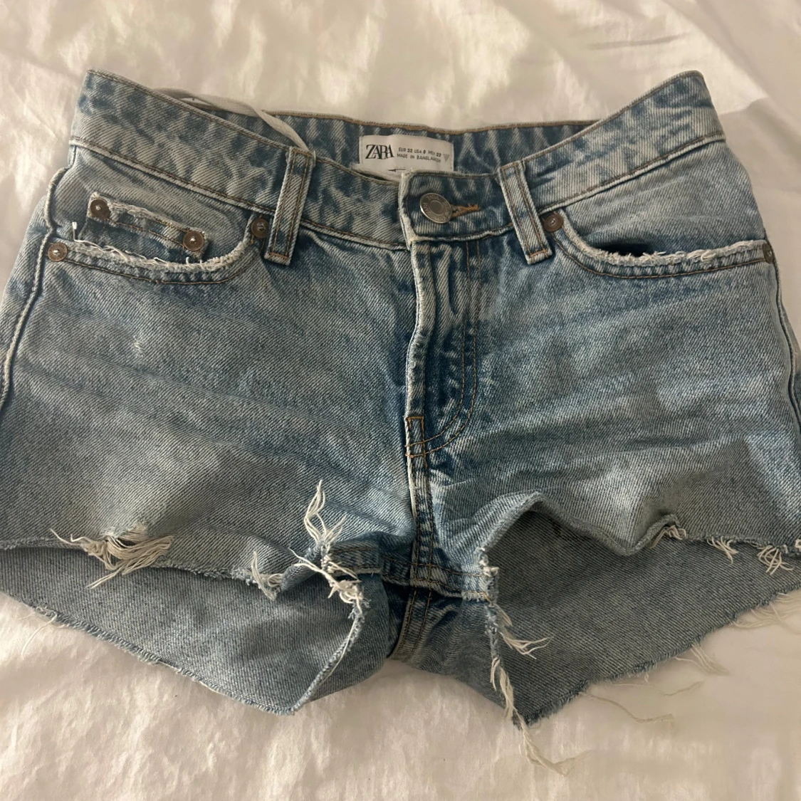 Säljer ett par snygga blå jeansshorts från Zara, de var jeans först men jag klippte dom så att de blev shorts💕
