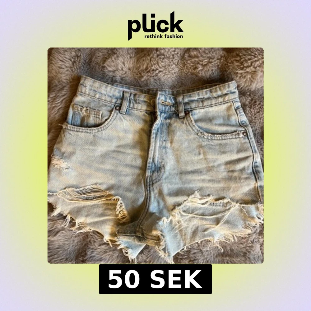Säljer ett par ljusblå jeansshorts med råa, fransiga kanter och slitna detaljer. Klassisk femficksmodell med knapp och dragkedja framtill. Perfekt för dig som gillar en avslappnad och edgy stil. Materialet är bomull och passformen är loose. Passar inte mig längre