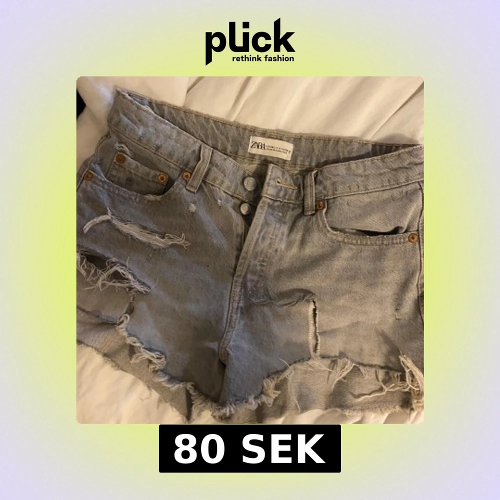 Snygga grå jeansshorts från Zara med slitna detaljer och fransar. Dom har dock spruckit upp lite