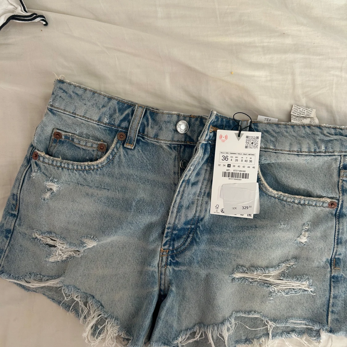jätte snygga jeans shorts med slitningar från zara! aldrig använda, strl 36 🌟