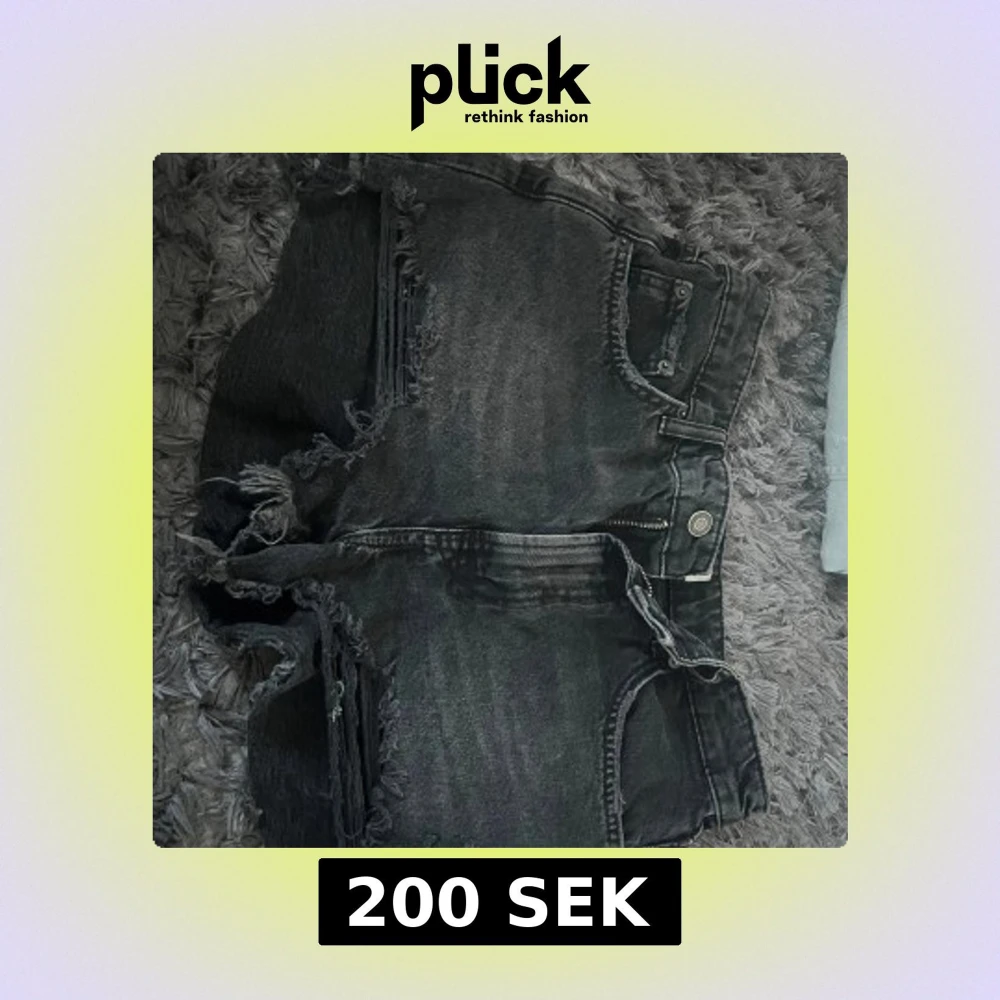 Säljer ett par svarta jeansshorts från Zara med råa franskantade benslut och slitna detaljer. Shortsen har klassisk femficksdesign, hög midja och dragkedja med knapp. Perfekta för en cool och avslappnad stil.