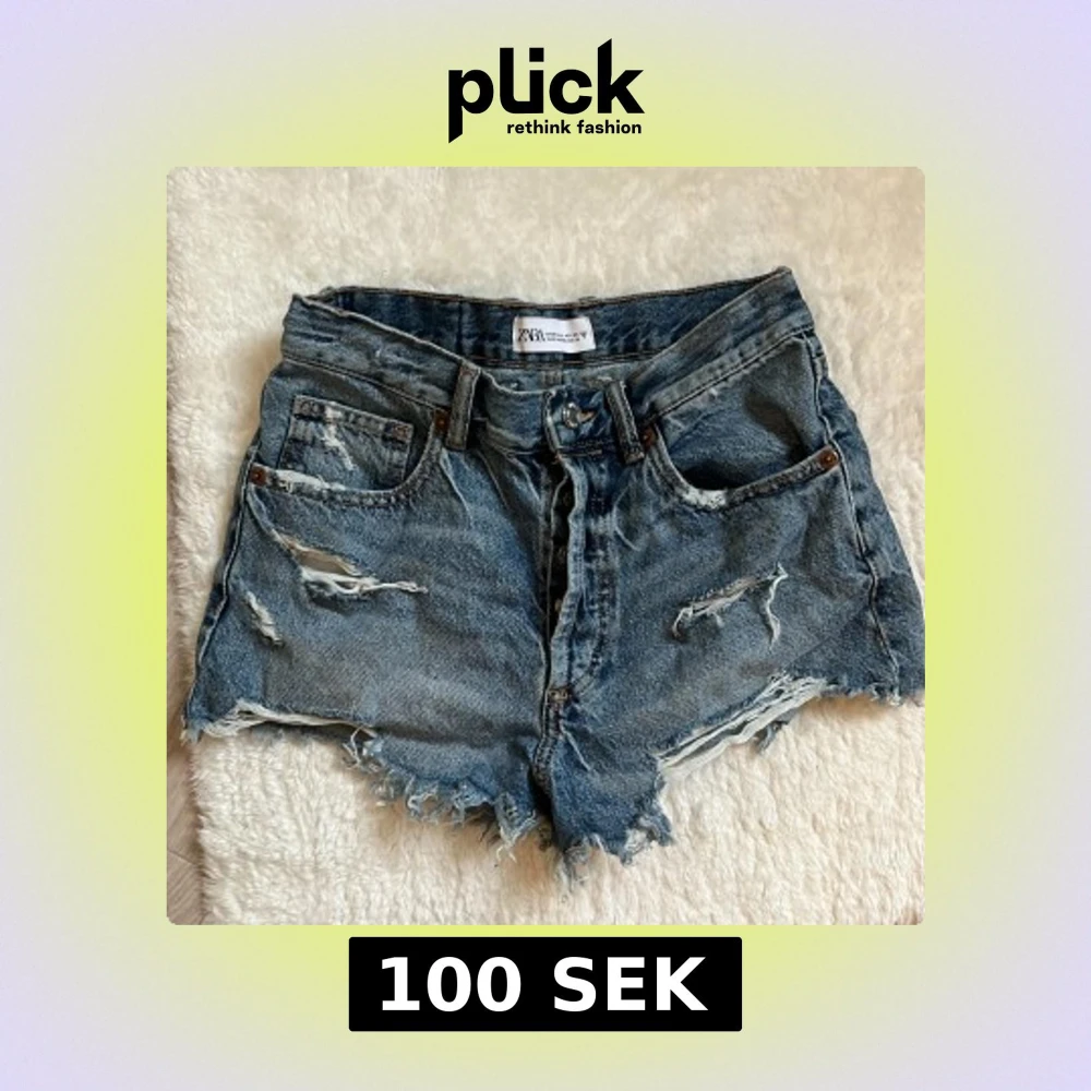 Snygga blå jeansshorts från Zara slitna detaljer framtill och baktill. Klassisk femficksmodell med knapp och dragkedja. Perfekt för dig som gillar en edgy och avslappnad stil.