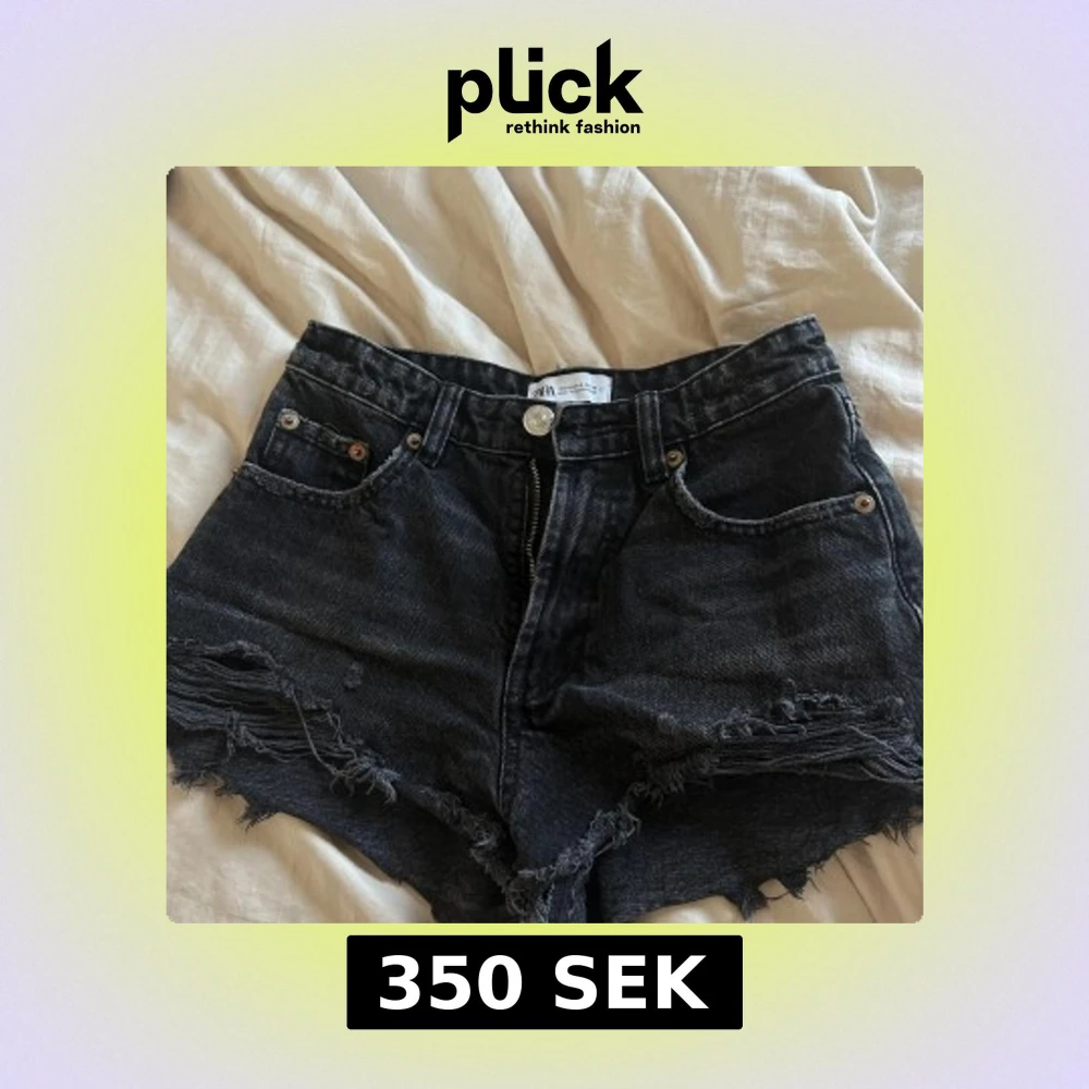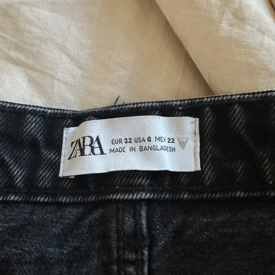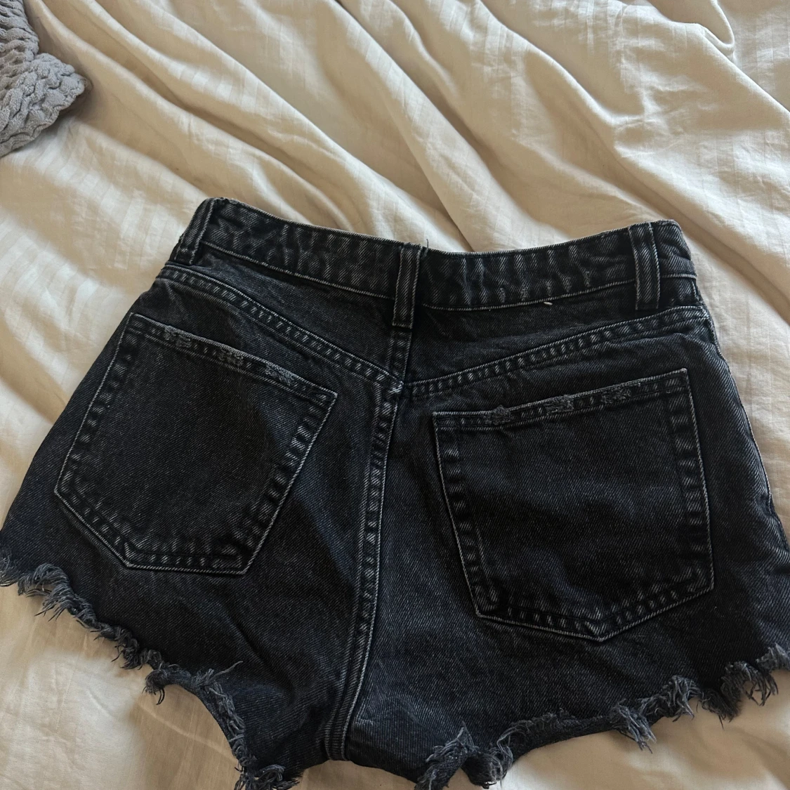 Säljer ett par svarta jeansshorts från Zara med fransiga kanter och hög midja. Perfekta för en avslappnad stil. De har klassiska fem fickor och en dragkedja framtill.