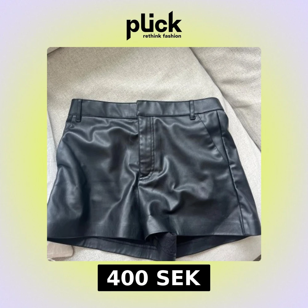 Snygga svarta shorts i skinnimitation från Zara. De har en stilren design med hällor för bälte och en diskret dragkedja framtill. Perfekta för en trendig look!