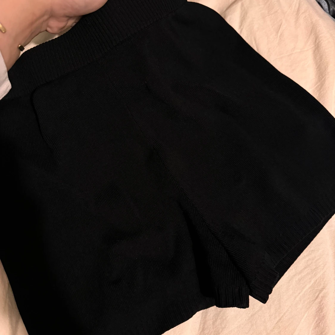 Svarta ”ribbade” short fast i ett lite finare men stretchigt material. Passar att klä upp med eller ja till vardags. Använda 1 gång