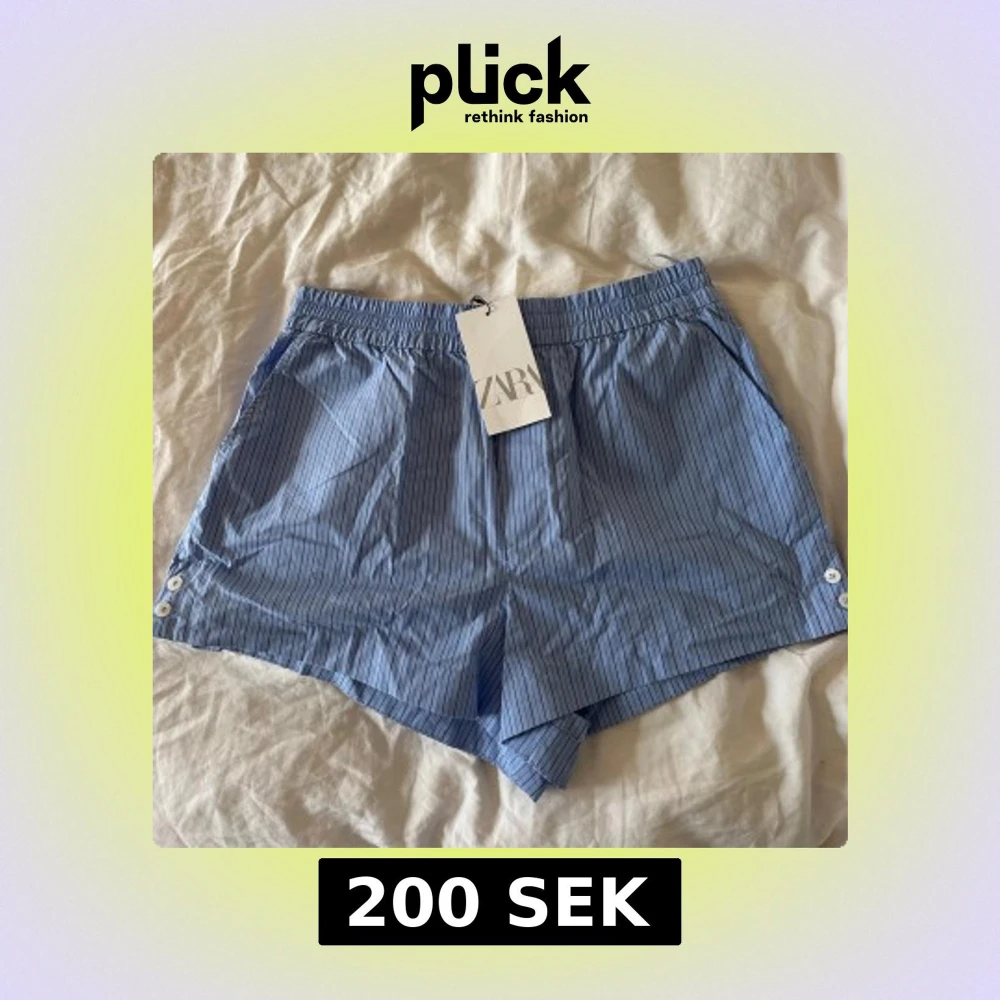 Snygga blå shorts från Zara med smala ränder och elastisk midja. De har knappar på sidorna för en extra detalj. Perfekta för en avslappnad stil.