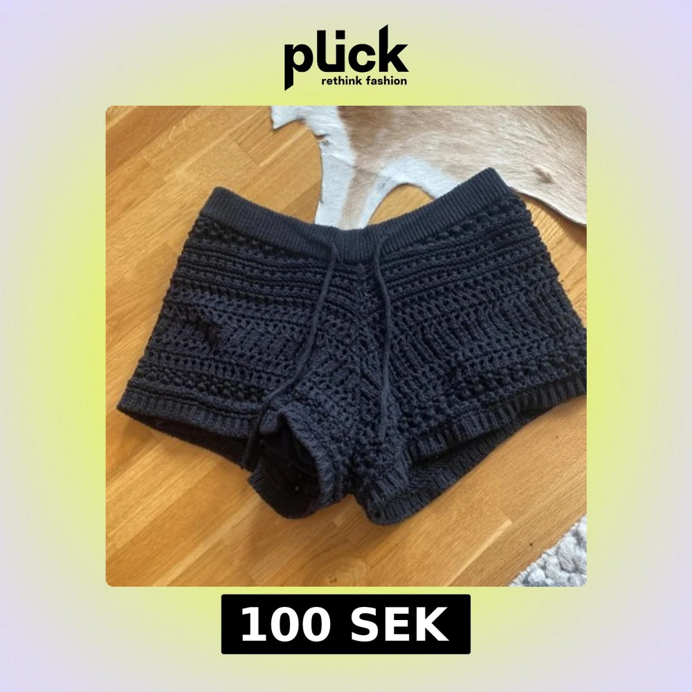 Snygga svarta stickade shorts med coolt virkat mönster och snörning i midjan.