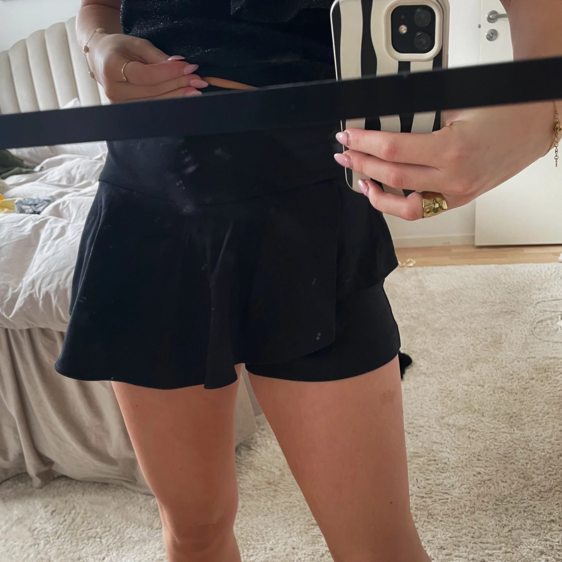 Svarta skjorta men som ser ut som en kjol framifrĂ„n. Superfin och i bra skick! Pris kan diskuterasđ„°