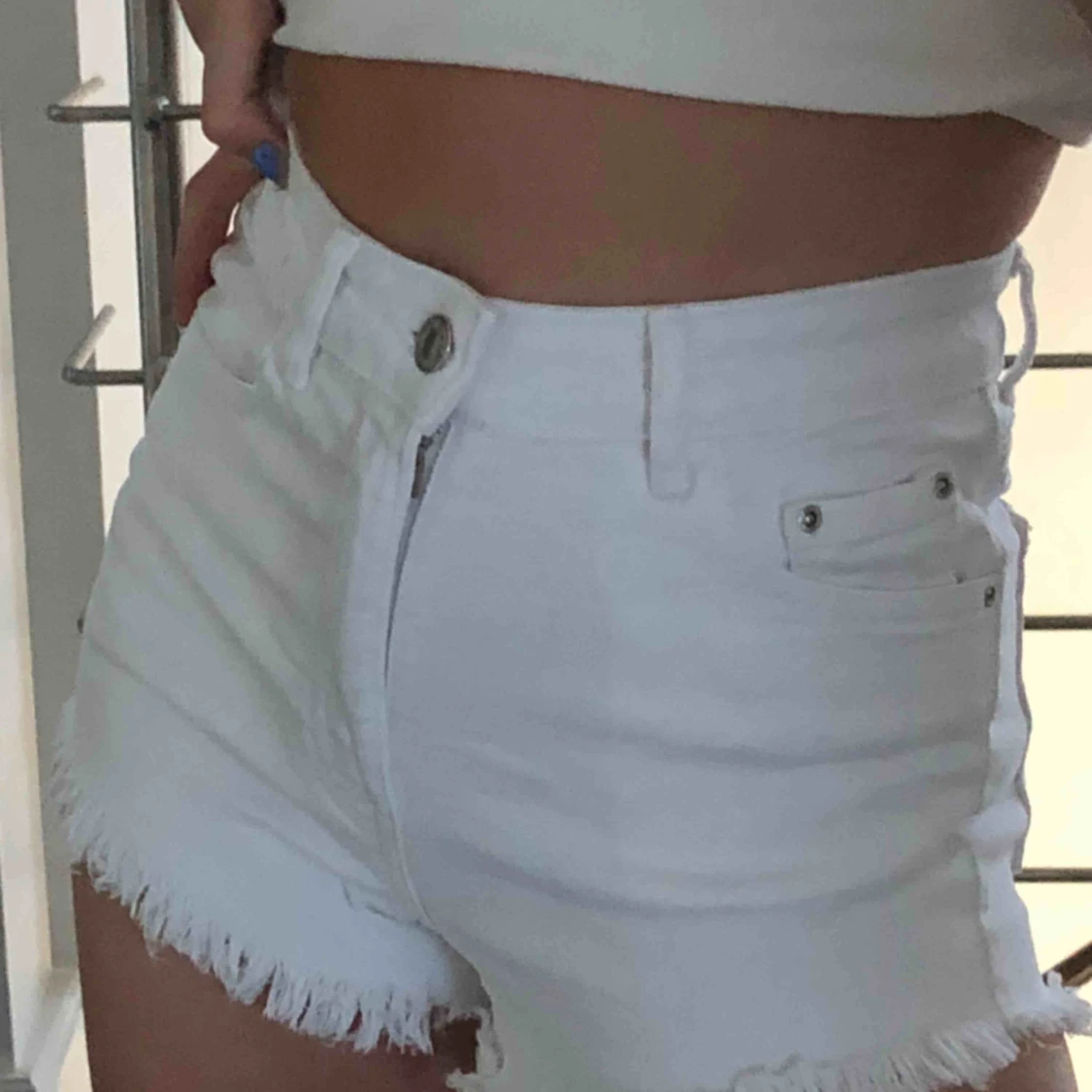 vanliga vita fransade jeansshorts från zara!!! i stort sätt aldrig använda 😇😇😇