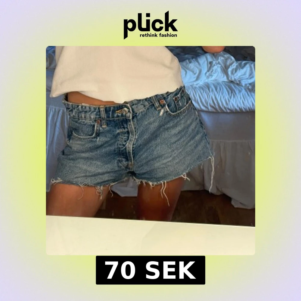 Snygga blå jeansshorts från Zara med mellan råa, fransiga kanter. Klassisk femficksmodell i denim med dragkedja och knapp framtill. Perfekta för sommaren och ger en avslappnad vibe❣️