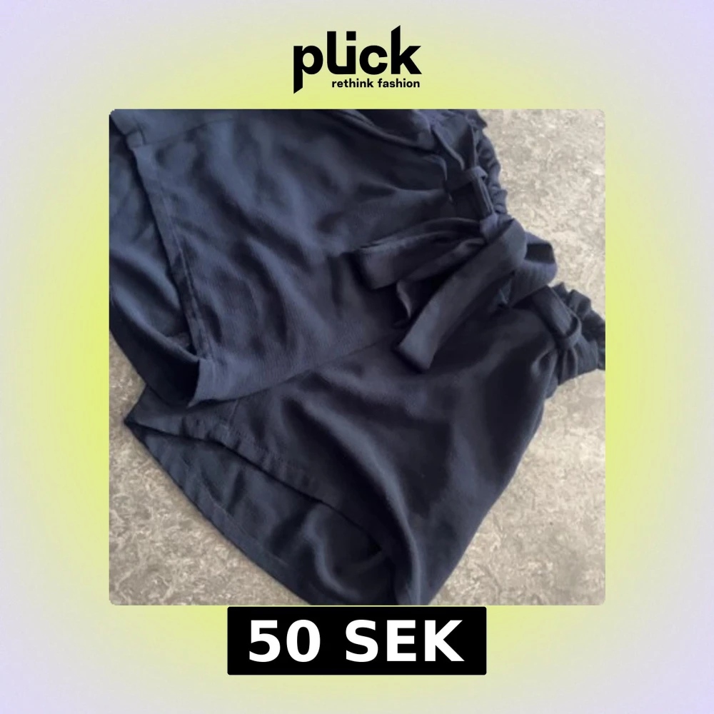 Säljer ett par mörkblå shorts från Only med hög midja och knytband i midjan. Shortsen har en lös passform och resår i midjan för extra komfort. Perfekta för varma dagar och enkla att matcha med olika toppar.