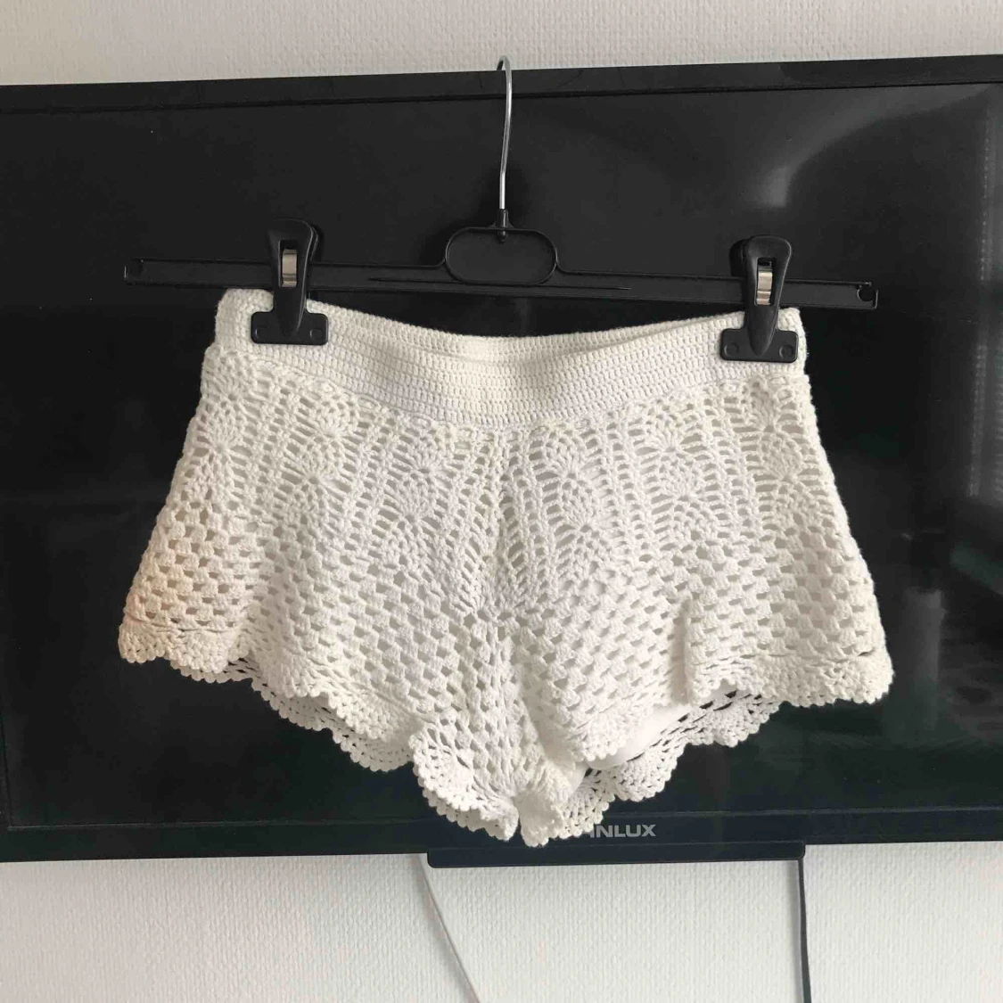 Vita spets-shorts med volang - Ett par vita spets-shorts som är superfräscha och perfekta för sommaren. De är sköna att ha på sig och sitter snyggt utan att kännas för tajta. Lätta att matcha med typ ett linne eller en t-shirt för en chill men ändå fin outfit.
