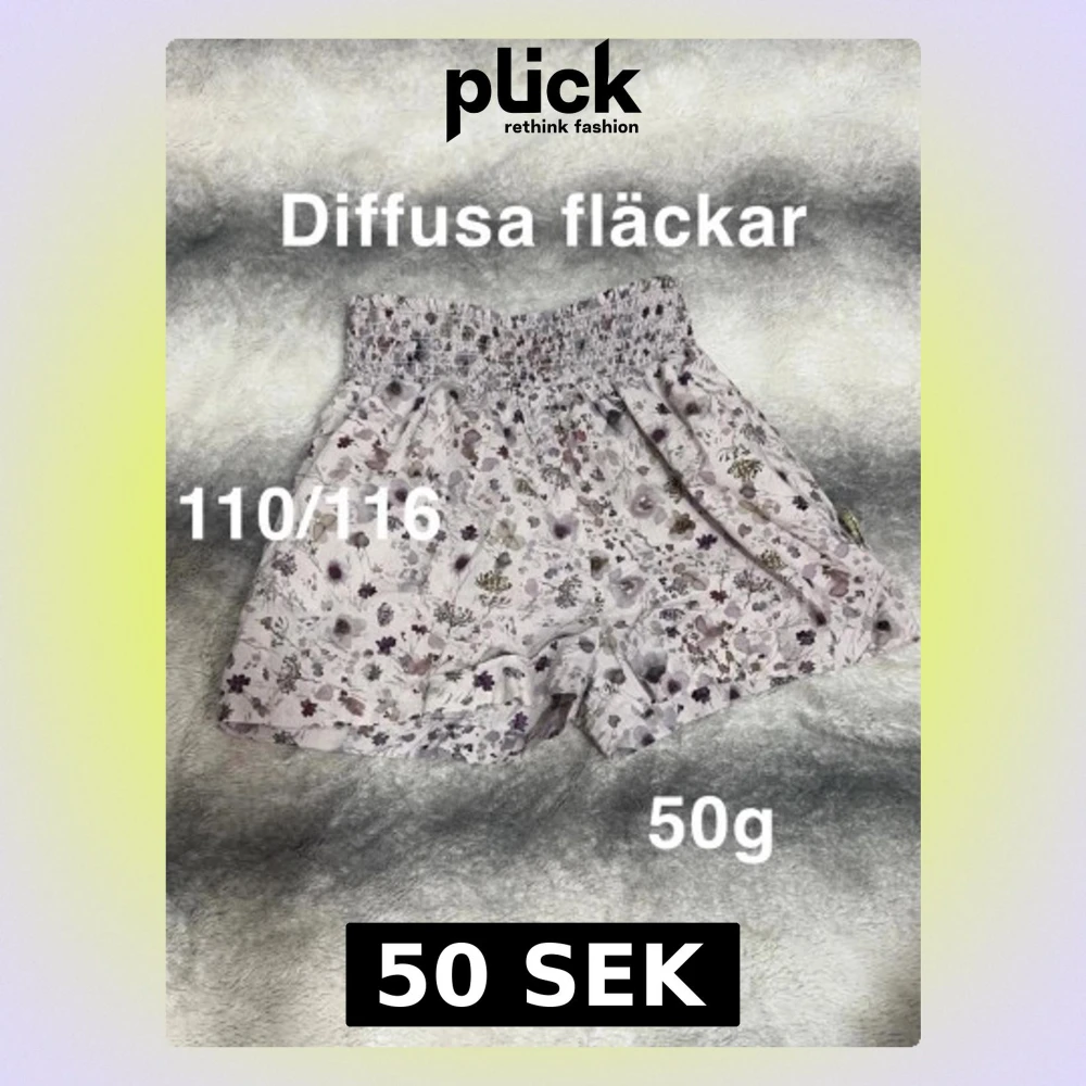Säljer ett par ljusa shorts med blommigt mönster och bred resår i midjan. Perfekta för varma dagar och superbekväma tack vare den lösa passformen. Materialet känns mjukt och svalt. Snygga att matcha med en enkel t-shirt!🌸 Diffusa fläckar. Storlek 110/115