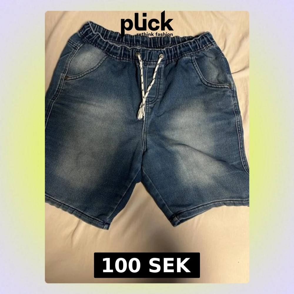 Säljer ett par blå jeansshorts från Pepperts i storlek 164. Shortsen har elastisk midja med vit snörning, två fickor fram och två bakfickor med dekorativ söm. Materialet är mjuk denim och passformen är loose för en avslappnad stil.