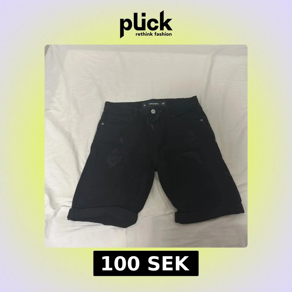 Svarta jeansshorts från Terranova med snygga slitningar framtill och uppvikta benslut. Klassisk femficksmodell med dragkedja och knapp. Perfekta för en cool och avslappnad stil.