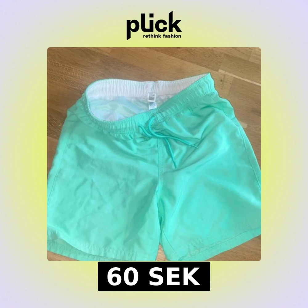 Säljer ett par mintgröna badshorts med elastisk midja och snörning framtill. Shortsen har innerbyxa i mesh och är perfekta för strand eller pool. Lätta och snabbtorkande, passar dig som gillar en fräsch och enkel stil.