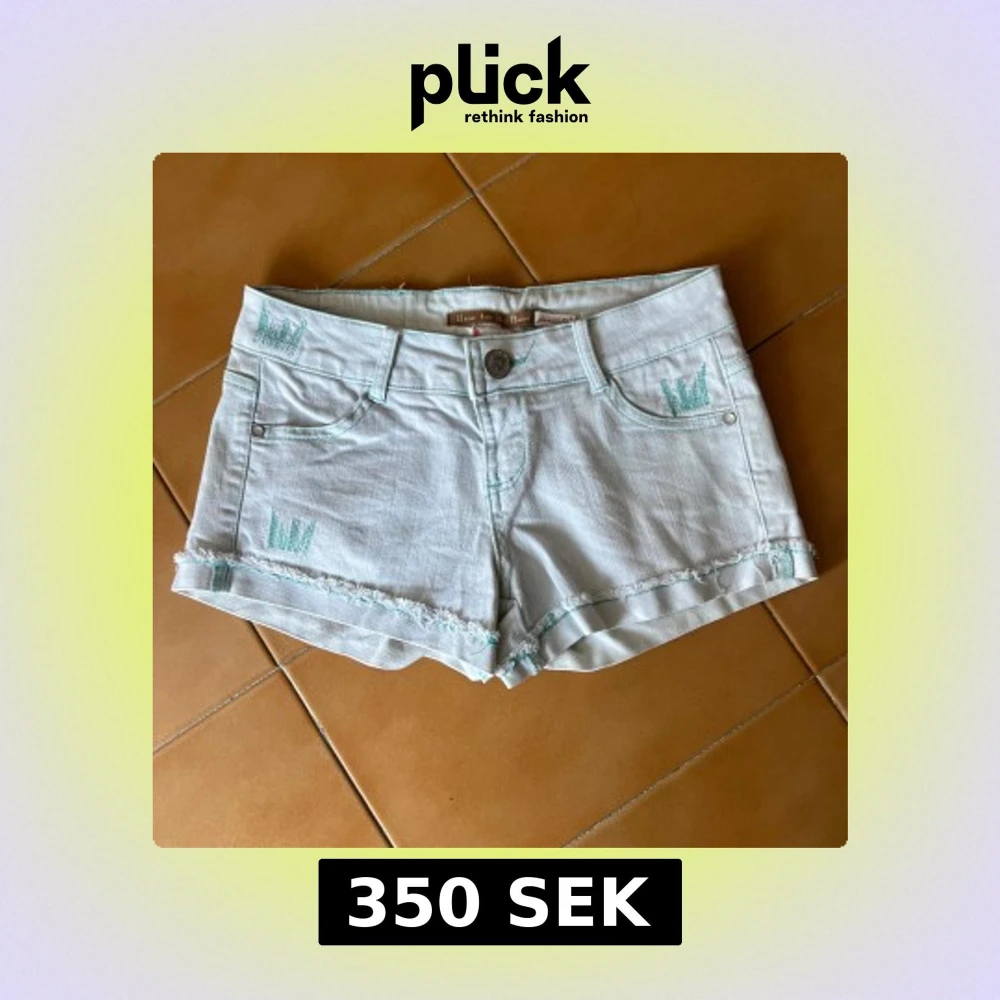 Snygga ljusblå jeansshorts med turkosa sömmar och broderade detaljer. Modellen är lågmidjad med fransig kant nertill och klassiska fickor både fram och bak. Perfekta till sommaren! Priset kan diskuteras💗