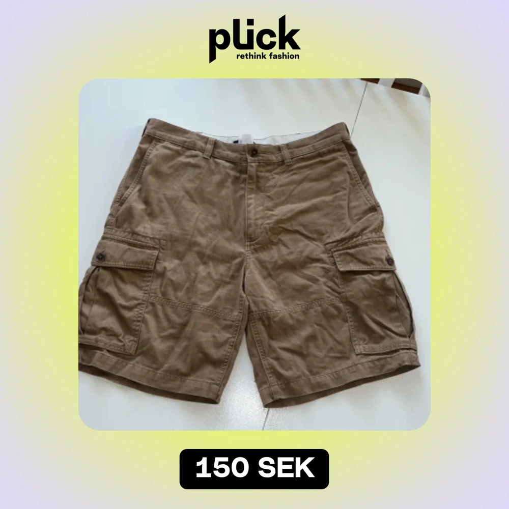 Bruna cargo-shorts från Lands' End i storlek 34 med många fickor. Passformen är ”traditionell” och materialet är gjort av 100% bomull. Pris kan diskuteras.