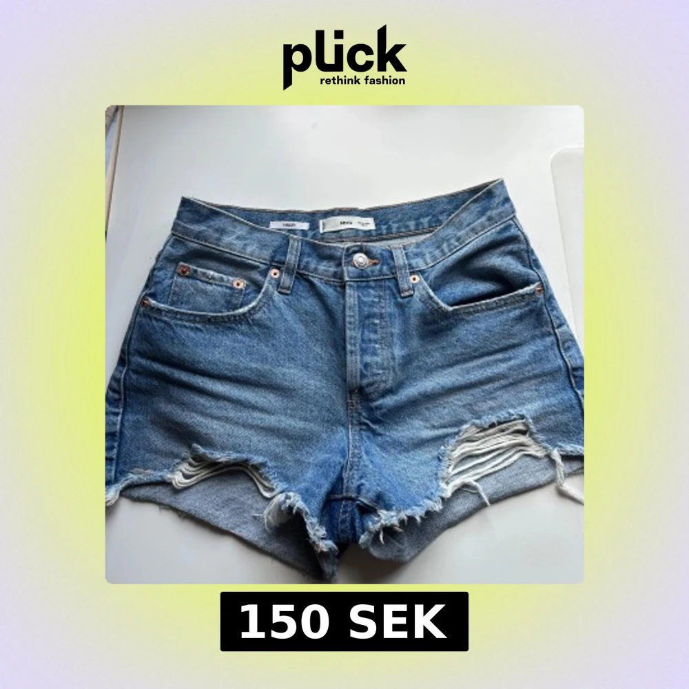 Snygga blå jeansshorts från MNG med hög midja och råa, slitna kanter. Shortsen har klassisk femficksdesign och coola slitningar framtill för en avslappnad vibe. Perfekta till sommaren och lätta att matcha med allt. De är en storlek 34, och jag som vanligtvis har 36 får på mig dom, men de sitter lite tajt. Midjan är medelhög