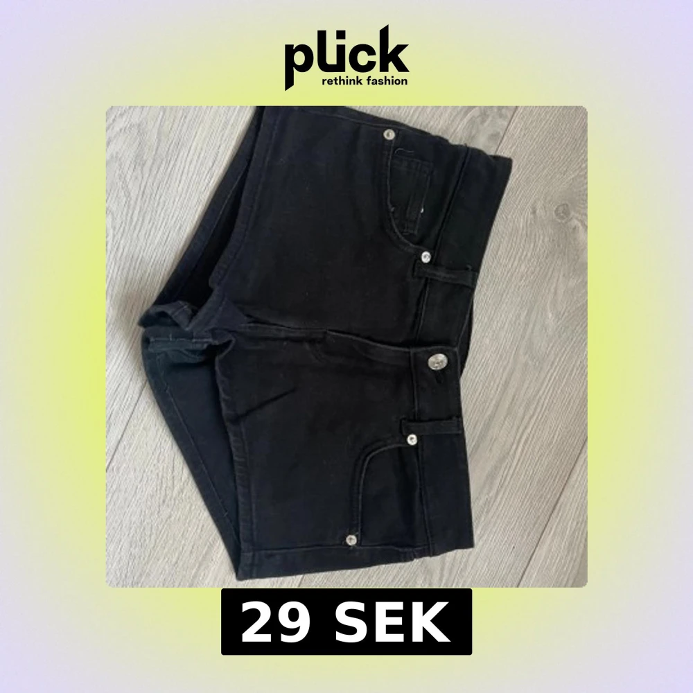 Säljer ett par svarta, tighta minishorts från H&M Divided. Klassisk femficksmodell med knapp och dragkedja framtill. Perfekta till sommaren och lätta att matcha med allt. Snygg och enkel design som alltid funkar. Passar även S.