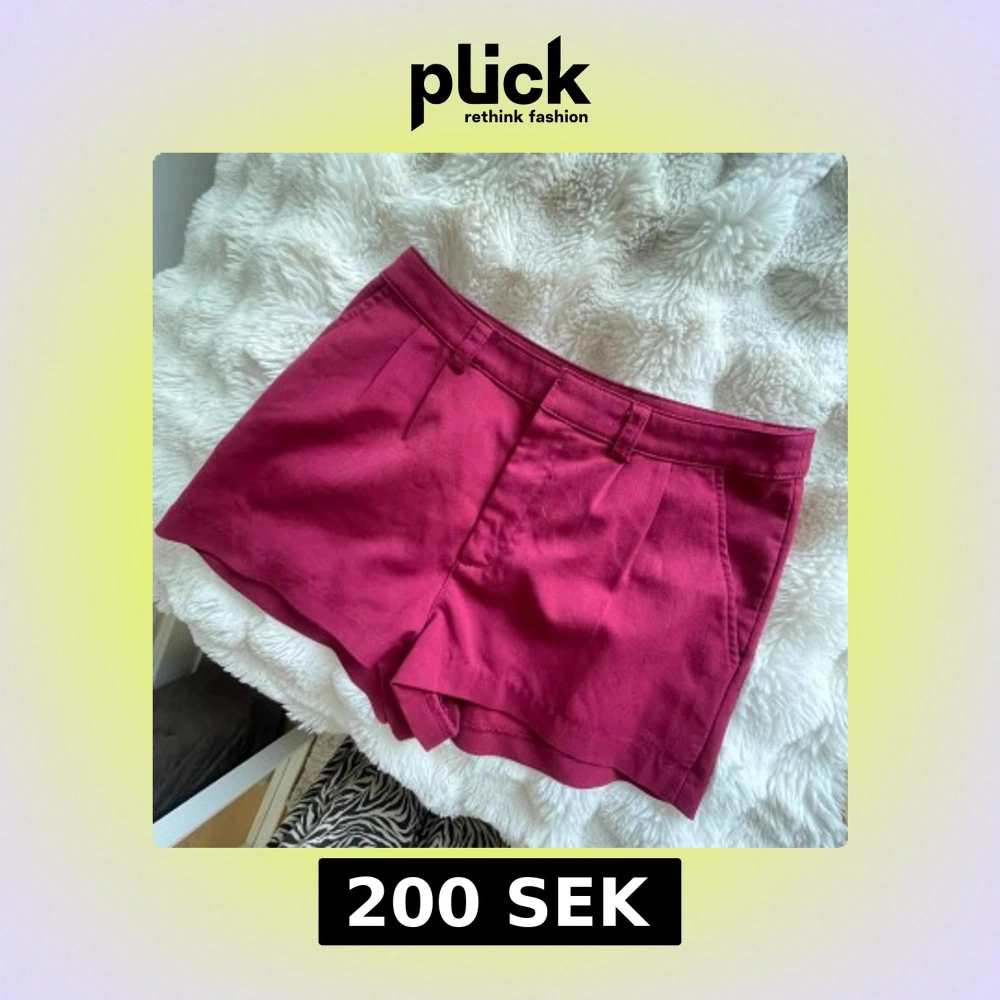 Snygga vinröda shorts med klassisk passform. De har hällor för bälte, diskreta fickor och veck framtill som ger en stilren look. Perfekta för sommardagar och lätta att matcha med både crop tops och oversized skjortor.