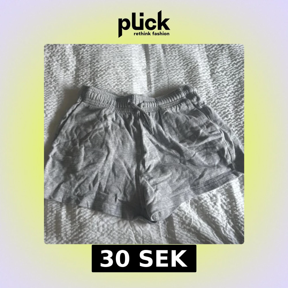 Säljer ett par bekväma grå shorts med elastisk midja och snörning. Perfekta för en avslappnad dag eller träning. De är tillverkade i ett mjukt material som ger en skön känsla.