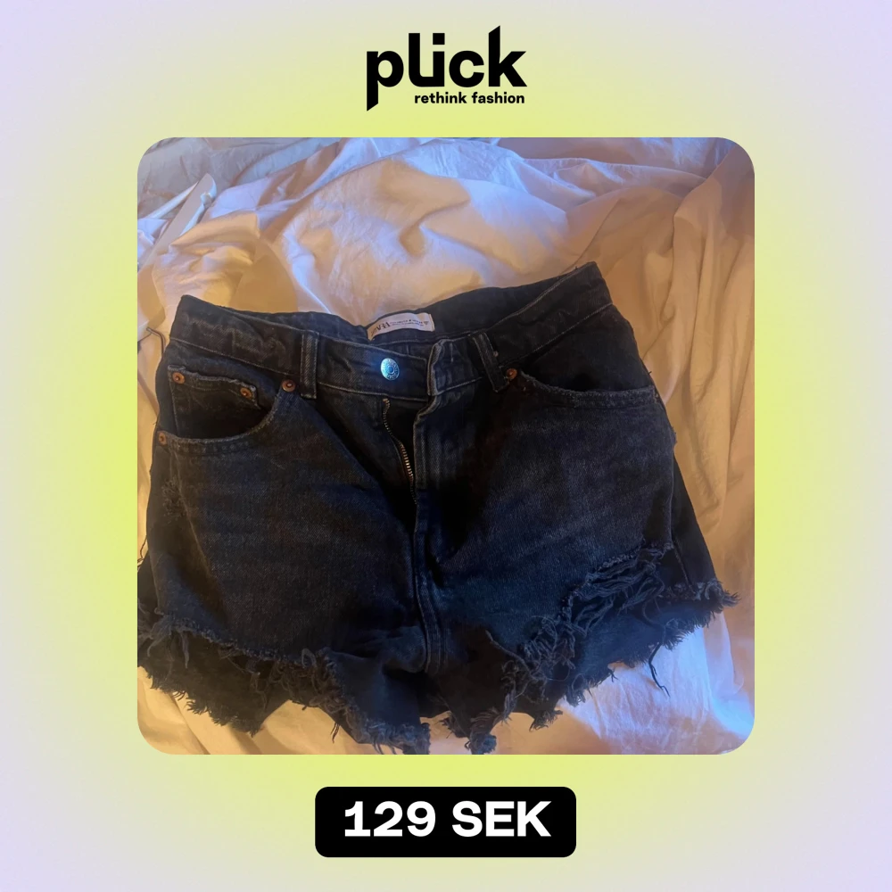 Säljer ett par coola svarta jeansshorts med fransiga kanter. De har en klassisk femficksdesign och en knapp med dragkedja framtill. Perfekta för sommaren och ger en avslappnad look. Passar bra till både vardag och fest!