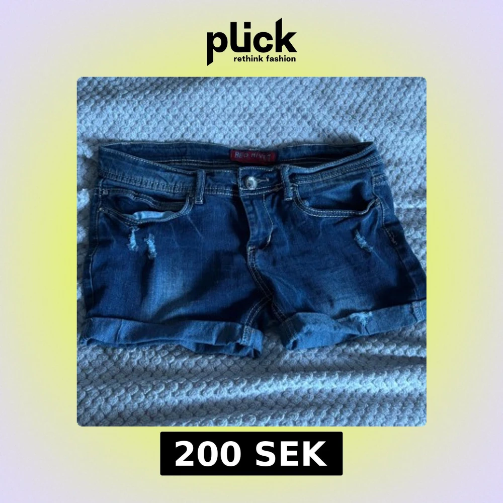 Snygga mörkblå jeansshorts från Red Rivet med slitna detaljer och uppvikta benslut. Klassisk femficksmodell med kontrastsömmar och snygga bakfickor med broderade mönster. Helt nya och oanvända. Nypris 300 kr💕