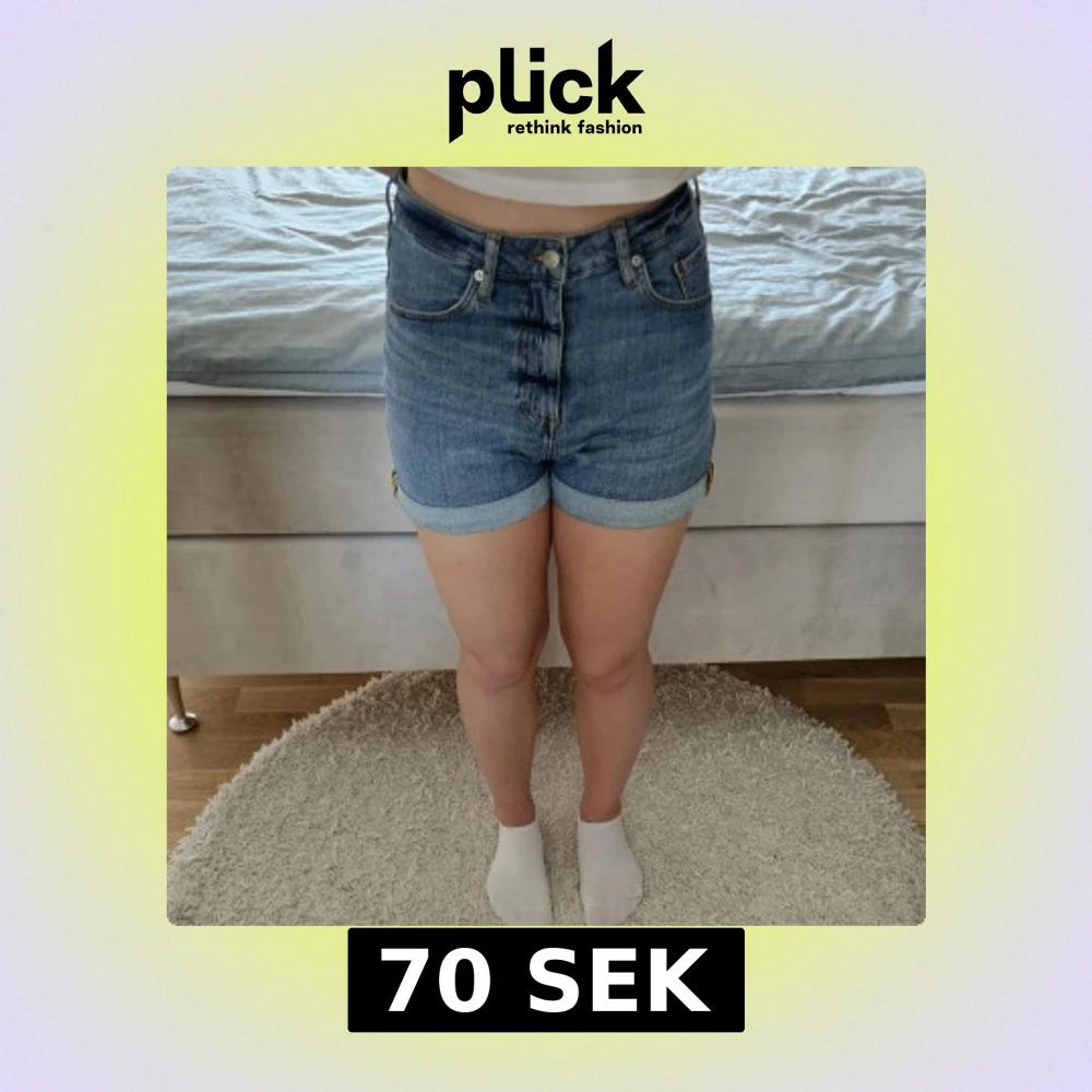 Snygga blå mom shorts från &Denim med ultrahög midja och klassisk femficksmodell. Shorts med uppvikta benslut och gylf med knappar. Perfekta för sommaren och ger en chill vintage vibe. Storlek 36 fast passar mig som bär 38 i vanliga jeans😊