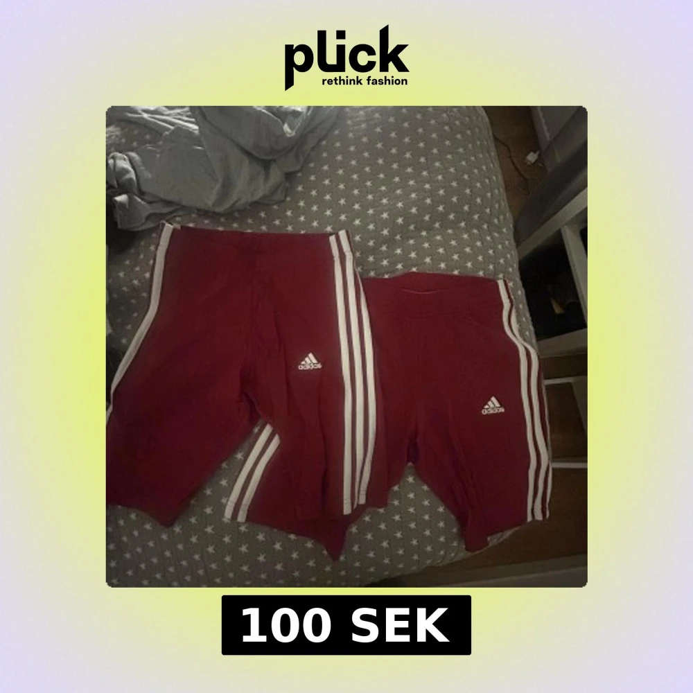 Säljer ett par röda Adidas shorts i storlek S med klassiska vita ränder längs sidorna och Adidas-logga framtill. De har en sportig look och är gjorda i ett mjukt och stretchigt material som passar perfekt för träning eller chill. Elastisk midja för skön passform.