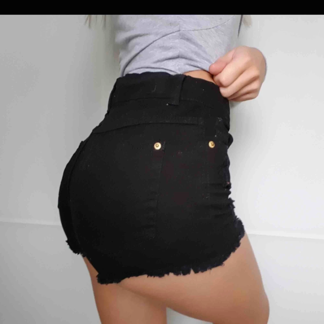Lågmidjade jeansshorts från Hollister - Säljer ett par jätte snygga lågmidjade jeansshorts från Hollister med slitna detaljer och uppvikta benslut. Klassisk femficksmodell med knapp och dragkedja framtill. Säljer då dem är för små för mig💗💗